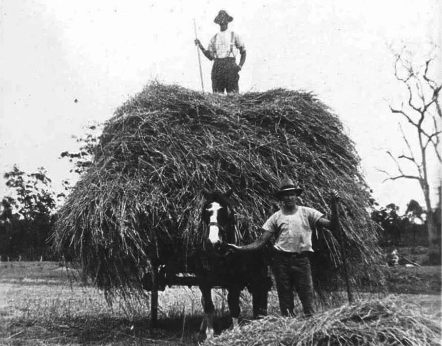 1922 Walter Sr and Walter Jr (holding horse) with greenfeed cut from Casula farm